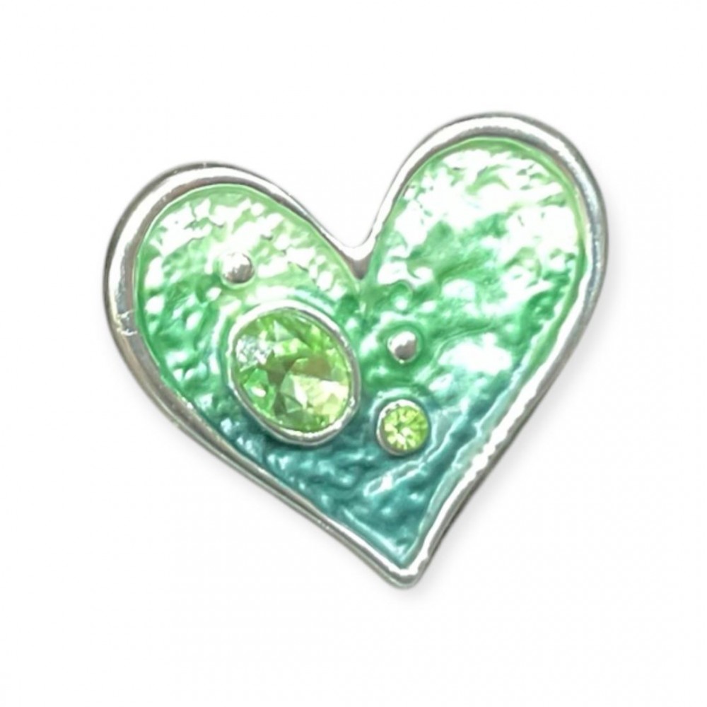 Inelul Cuore Green by Ajoy este o bijuterie romantică și expresivă, cu un design sub formă de inimă în degradee de verde intens și verde deschis, conturată de o margine argintie fină. Un simbol al eleganței naturale, perfect pentru un look feminin și fresh.