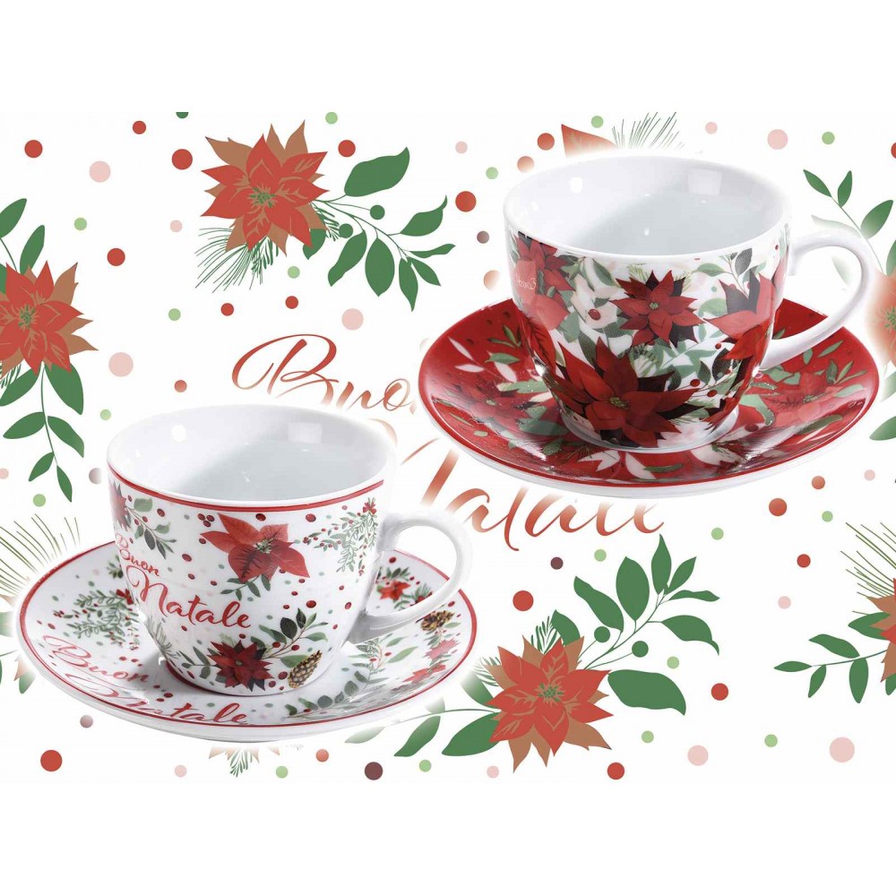 Set 2 Cesti de Cafea cu Farfurii Buon Natale
