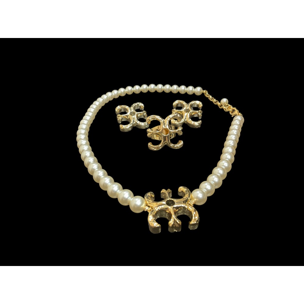 „Pearlbow” este un colier spectaculos și feminin, realizat din perle albe care se unesc în față într-un pandantiv supradimensionat sub formă de fundiță aurie din oțel inoxidabil. Piesa îmbină perfect rafinamentul clasic al perlelor cu modernitatea strălucitoare a metalului, rezultând o bijuterie de impact – elegantă, glam și inconfundabilă. Ideal pentru apariții sofisticate sau pentru a transforma o ținută simplă într-una memorabilă.