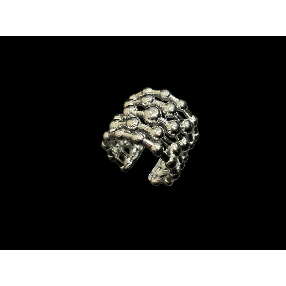 Ear Cuff Mini Dots Silver este o piesă fină și modernă, cu un design arhitectural minimalist. Forma sa amintește de un inel compus din 5 verigi subțiri, separate între ele de spații delicate, fiecare verigă fiind decorată din loc în loc cu biluțe foarte mici, subtile și elegante. Realizat din oțel inoxidabil argintiu, acest ear cuff creează un efect tridimensional discret și rafinat. Se poartă fără perforare și este ideal pentru look-uri contemporane, layering elegant sau apariții minimal-chic.